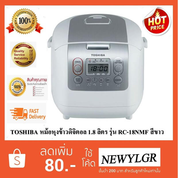 6. TOSHIBA หม้อหุงข้าวดิจิตอล 1.8 ลิตร รุ่น RC-18NMF – สีขาว