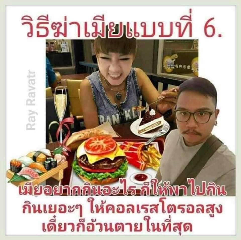6. วิธีฆ่าเมีย :มันอยากกินอะไรซื้อให้มันกิน จนมันคาเรสโตรอลสูง ไขมันอุดตันในเส้นเลือด เดี๋ยวไม่เกิน 50 ปี มันก็ตาย