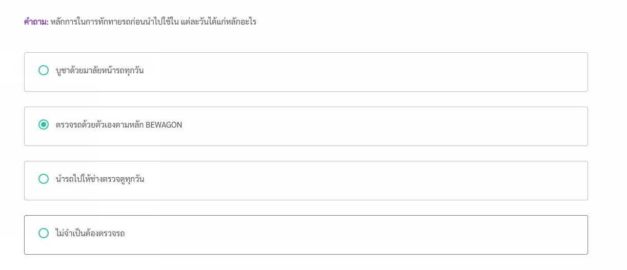 - ตอบแบบสอบถามหลังจบการอบรม โดยตอบแบบสอบถาม 4 ข้อ ซึ่งจะช่วยให้คุณเข้าใจเนื้อหาการอบรมต่อใบขับขี่ออนไลน์มากขึ้น
